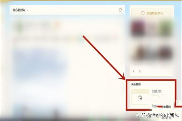 第四步:在“特别关心”选项弹出的对应的右侧列表中找到右下角的“关心我的”,在那里可以看到特别关心我的人的人数。