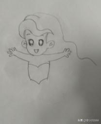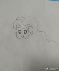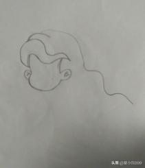 2、第一步,我们要在纸上先画上小美人鱼的美丽的脸庞和长长的头发。她的脸型是半圆形的,长长的头发像波浪一样。