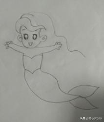 5、然后我们来画美人鱼的美丽的鱼尾。美人鱼的尾巴要有一定的弧度,显得柔韧有力度。