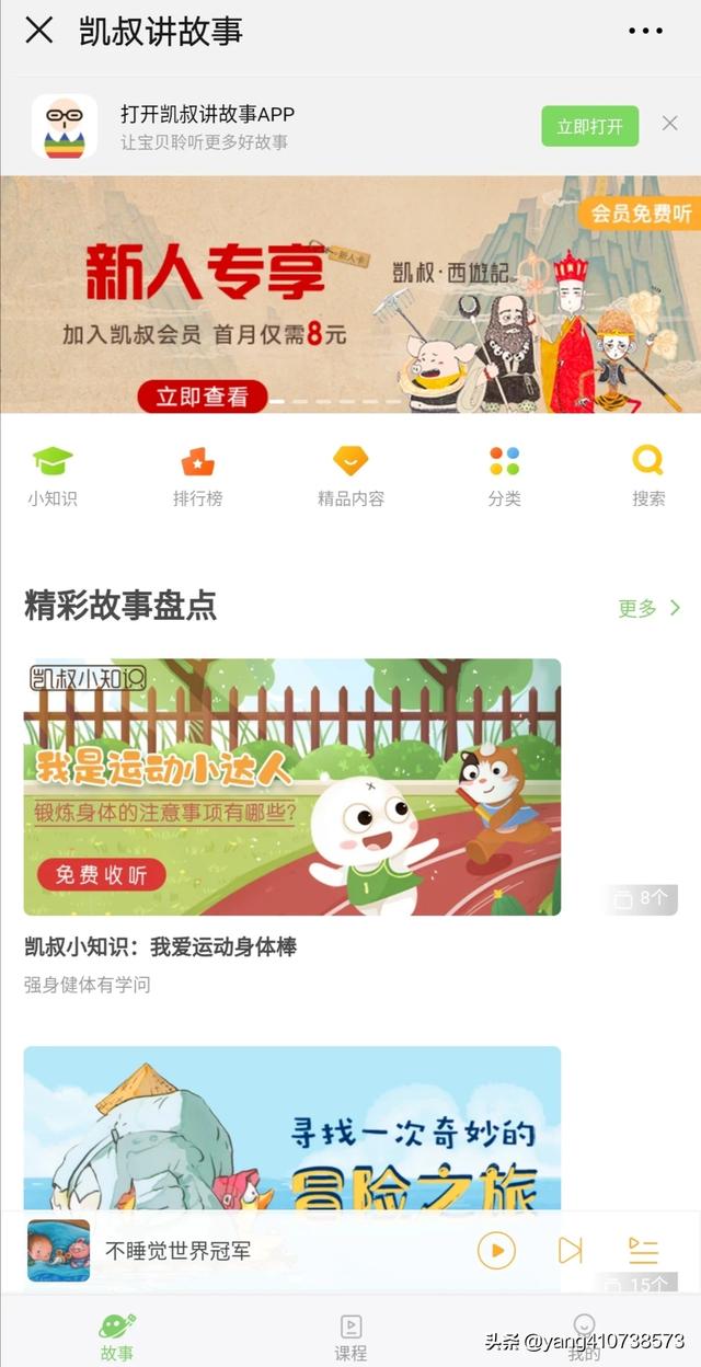 1. 凯叔讲故事优点就是声音磁很好听,故事讲的好,是他自己讲的。不过有些连载的故事要收费,有些是免费的。