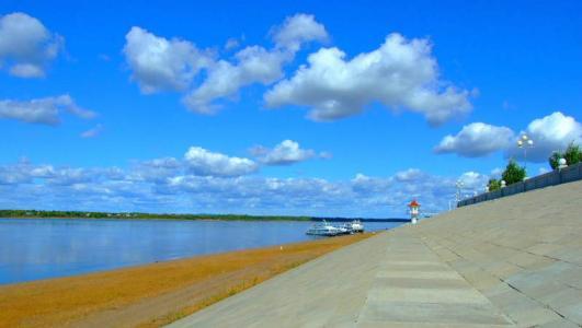 海拔166米,沿江的平原城市。一月平均气温-26.6度,七月平均气温则达到了22.9度,年温差达到49.5度。同时还有个记录:就是保持着冬季温差最小的一天,1981年1月26日的最低气温为-44.5度,最高气温为-38.5度,仅为6度,历史最低气温-47.7度。