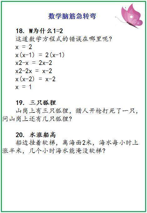 20个“烧脑”智力题,做不出来妄称学霸?