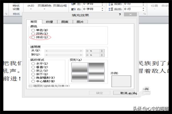 3、在“渐变”选项卡中,点击“预设”