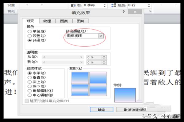 4、在“预设颜色”中,选择“雨后初晴”