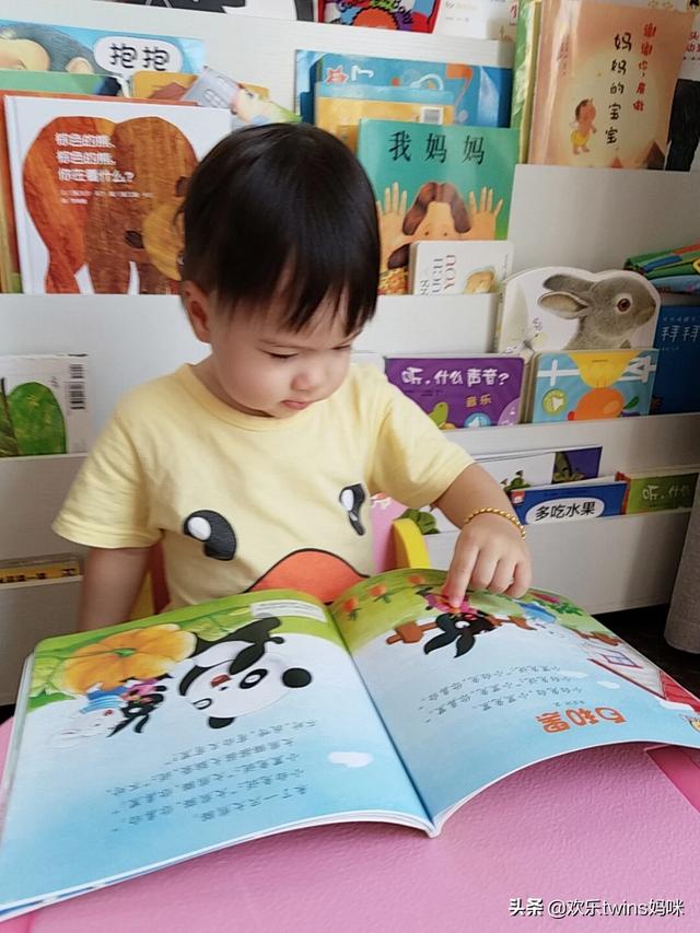 我从我家娃出生起就开始给看黑白卡,三个月开始读绘本,刚开始是没什么计划地读,记得就读,不记得就算了。到八九个月的时候她们开始对书本很感兴趣了,给纸板书也能自己翻页,手指着某个地方。那时基本上每天都会一起看好几次的书,有时就一两分钟,有时五六分钟吧。她们有兴趣时我就讲给她们听,爬开就算了。到一岁的时候,居然开始常常拿书来让我讲故事,并且都有自己喜欢的书,比如姐姐喜欢《从头动到脚》,妹妹喜欢《棕熊棕熊你看到什么》,每次都是拿相同的书。后来我尝试着问她们,你去拿《猜猜我有多爱你》,结果就拿对了,然后我再问一遍《Guess how much I love you》,还真的去拿了英文原版。好家伙居然中英文都分得清了。因为我跟老公一直对娃实行双语启蒙,还真的在一岁左右完全实现了双语都听懂了。