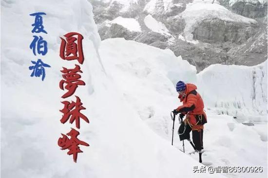 2018年5月14日,四度遇阻却没有放弃梦想的夏伯渝第五次挑战登顶珠峰终于成功, 成为中国第一个依靠双腿假肢登上珠峰的人 。