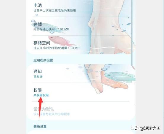5、在应用程序详情页面,下拉页面并进入【权限】。