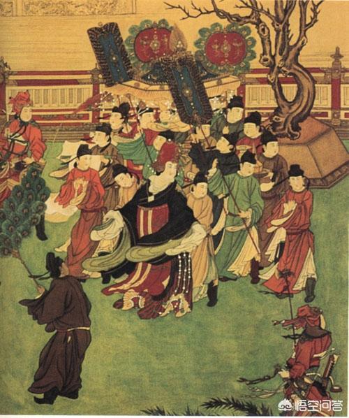 这张《武后从行图》是开元年间的唐人张萱画的,从“武后”这个称呼看女皇姐姐那时候起码还不太老。而且张萱就比女皇姐姐小了不到100岁,应该比较靠谱了。
