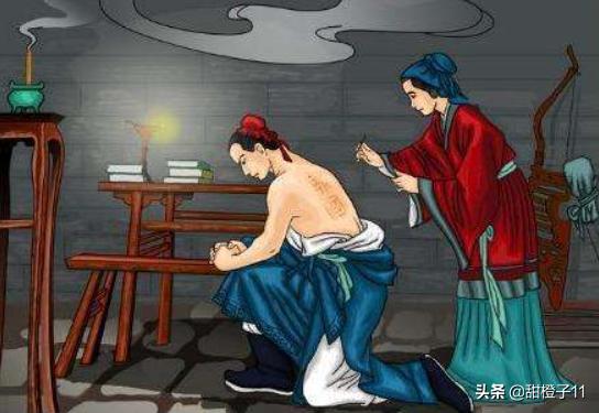岳飞解开上衣,露出瘦瘦的脊背,请母亲下针。姚太夫人先在岳飞背上写了字,然后用绣花针刺了起来。但“国”字没有一点,象征国内无首。刺完之后,岳母又涂上醋墨。从此,"精忠报国"四个字就永不褪色地留在了岳飞的后背上。