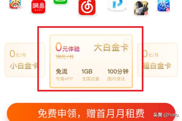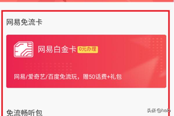 4、第四步点击免流卡进去,可以进行申请,这种卡可以对定向应用进行免流,如下图所示: